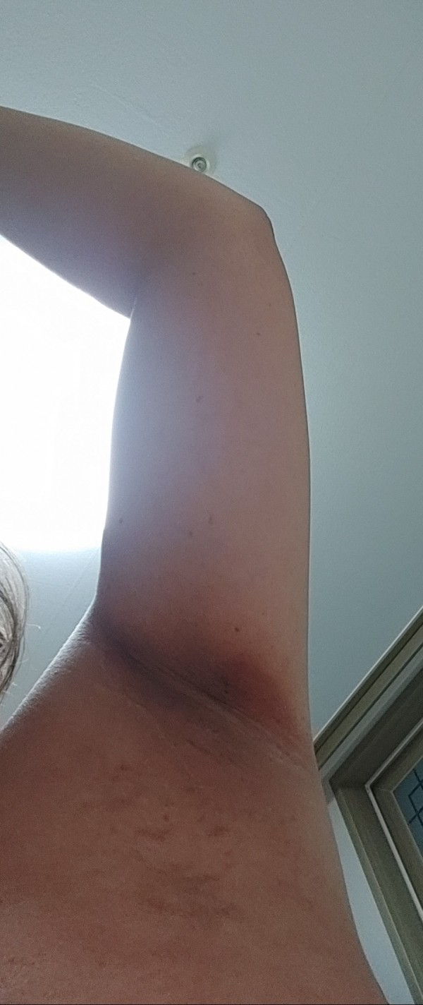 겨드랑이 양쪽부분과 앞가슴부분 주변에서